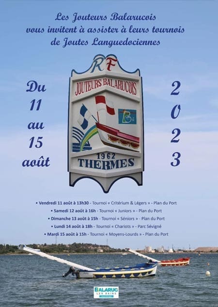 Calendrier Tournois de Joutes-Balaruc les Bains. Saison 2023. Retrouvez les dates et infos sur les tournois de Joutes Languedocienne à Balaruc les Bains