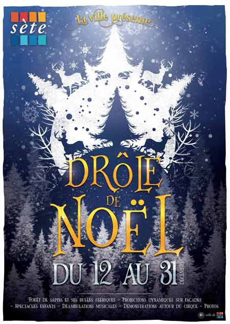 Programme Animations Noël 2020 Sète. Drôle de Noël à Sète : Place à la féérie. Du Samedi 12 au Jeudi 31 Décembre 2020. En centre ville de Sète, retrouvez les nombreuses animations pour toutes la Famille. Au programme : Forêt de Sapins et ses Bulles Féériques, Projections Dynamiques sur les façades. Mais aussi Spectacles pour les enfants, Déambulations Musicales, Démonstrations autour du Cirque …