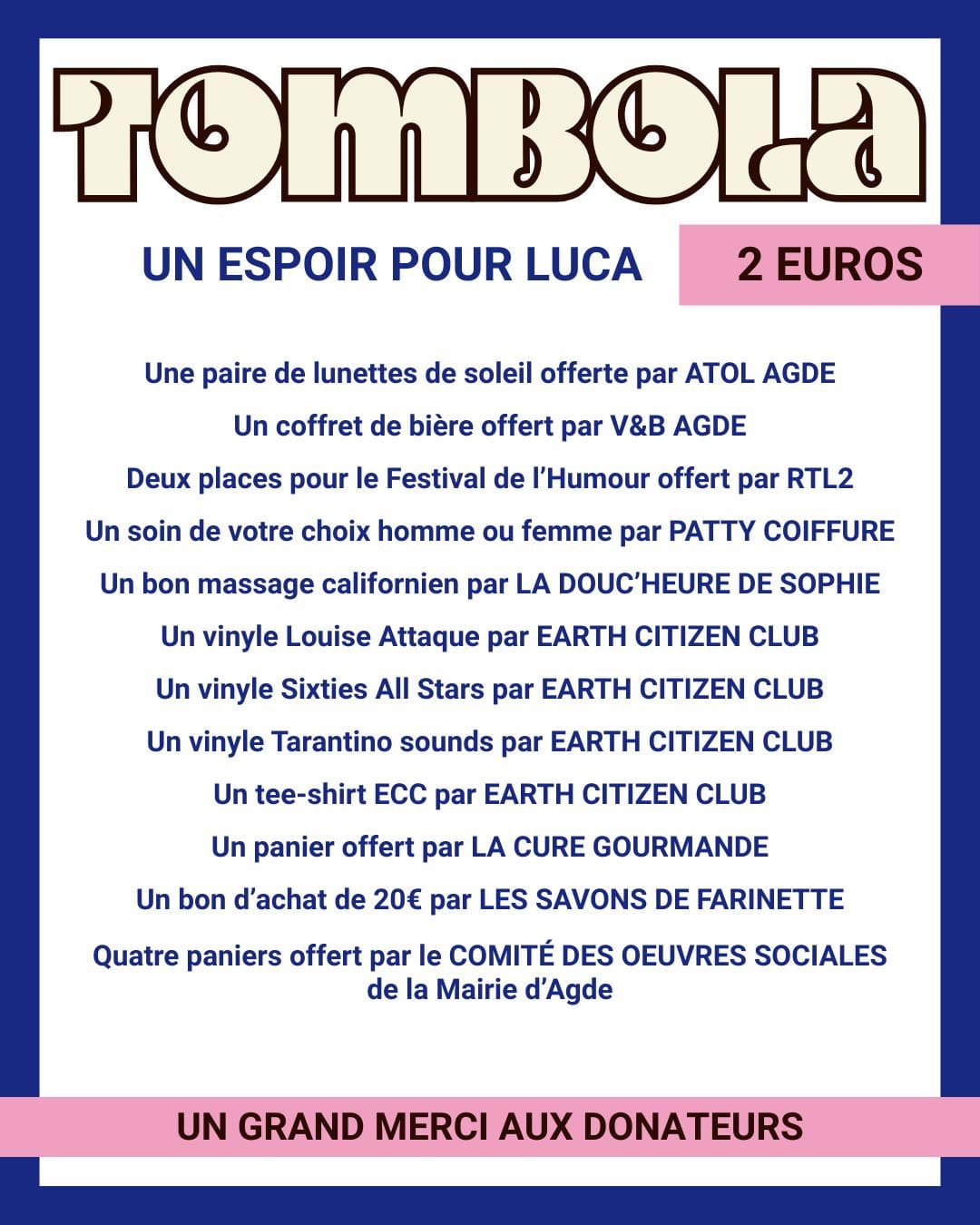 Pour l’édition 2026, les bénéfices de la tombola sera reversée à l’association @espoir_pour_luca_ ![]()