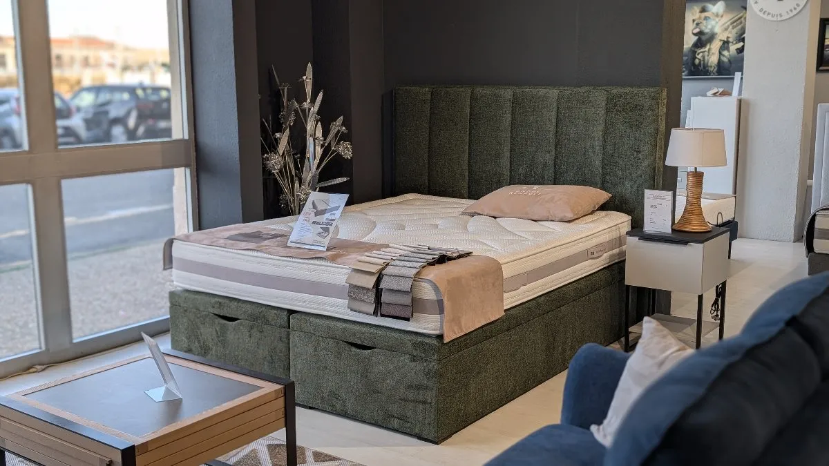 Un espace literie complet est aménagé dans le magasin, avec notamment les collections de la marque française André Renault, fabricant de matelas haut de gamme depuis des décennies. Les modèles sont exposés avec soin dans des ambiances de chambre reconstituées : têtes de lit tapissées, tables de chevet design, luminaires d’ambiance, pour aider les clients à se projeter. Pour ceux qui recherchent un investissement durable pour leur sommeil, cet espace mérite le détour.